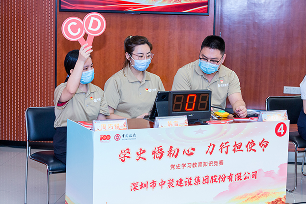 5月28日下午,中裝建設聯(lián)合中國銀行深圳中心區(qū)支行、深圳市物業(yè)專項維修資金管理中心、深圳市深圳公證處共同舉辦了以“學史悟初心 力行擔使命”為主題的黨史學習教育知識競賽。中裝建設及三家共建單位黨委班子成員、四家單位黨員代表參加本次活動。