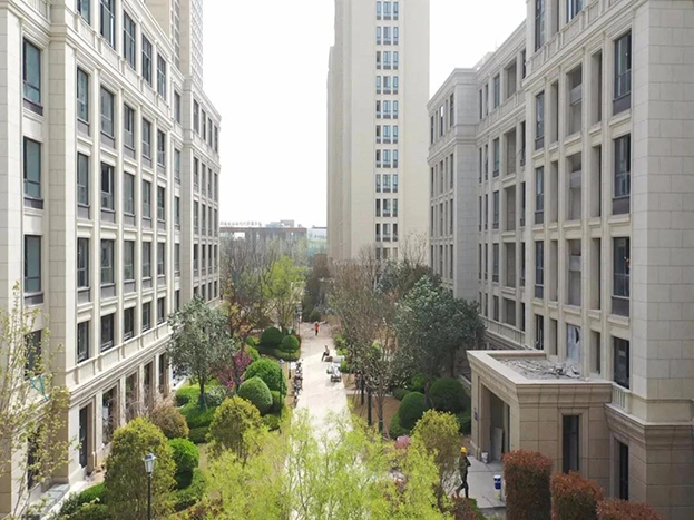 西安全運村于2017年開工建設(shè),經(jīng)過880天的日夜奮戰(zhàn),于2021年3月29日完成建設(shè)正式交付。全運村的用水、用電設(shè)計標(biāo)準(zhǔn)比普通住宅設(shè)計標(biāo)準(zhǔn)高出15%,綠化率達(dá)到40%以上。
