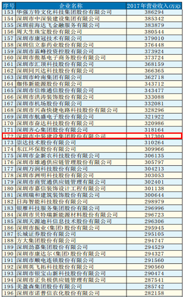 深圳市企業聯合會、深圳市企業家協會日前共同發布“2018深圳500強企業”名單,中國平安保險(集團)股份有限公司、華為投資控股有限公司、正威國際集團有限公司分別位列榜單前三甲。深圳市中裝建設集團股份有限公司以企業規模、品牌影響、發展潛力、社會責任、技術研發等優異的綜合實力,位居172名,名列深圳裝飾企業前茅。